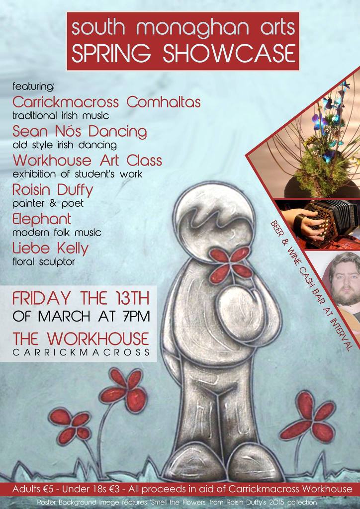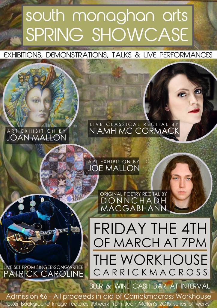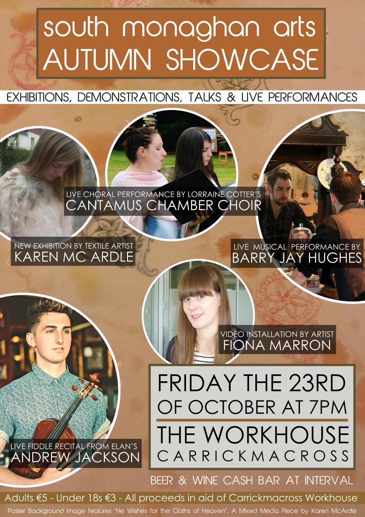 For the South Monaghan Arts Showcase series I developed a consistent design language that could be adapted for every new seasonal event. It was important that each design would be instantly recognisable as being from the same event team whilst still offering a unique design aesthetic to ensure the event’s identity reflects the specific artists participating.