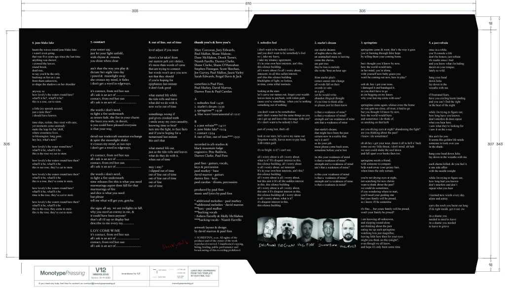 (Above) Sleeve Artwork for Somefinn Album TSK, TSK – Design & Layout by David Patrick Marron