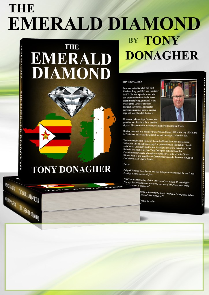 (Above) Book Sleeve Cover Art and launch promo for The Emerald Diamond by Tony Donagher – Design & Layout by David Patrick Marron