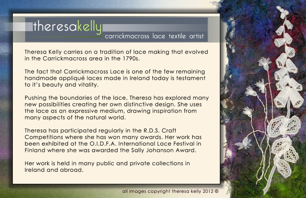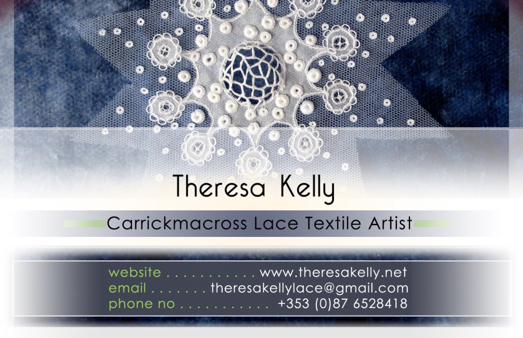(Above) Business Card Front & Back designed by David Patrick Marron for Carrickmacross Lace Textile Artist Theresa Kelly